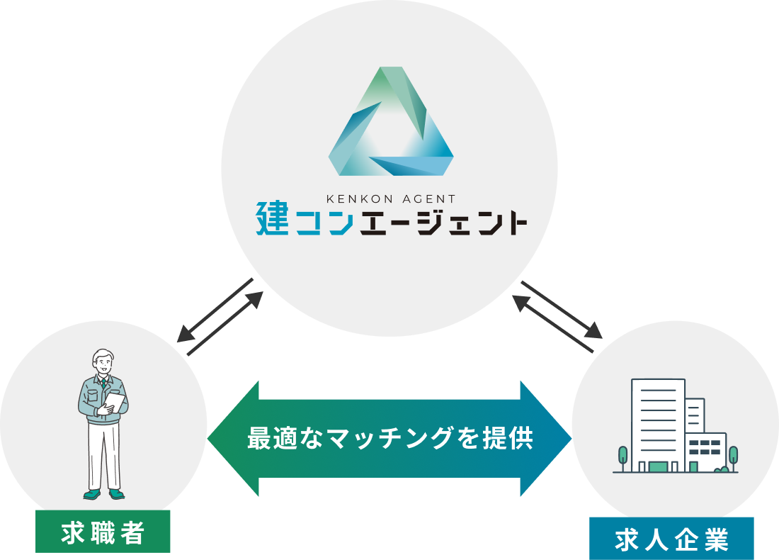 建コンエージェントは、求人を自分で検索し、直接応募して…という形ではなく、担当者が間に入って進める「紹介型」のサービスです。